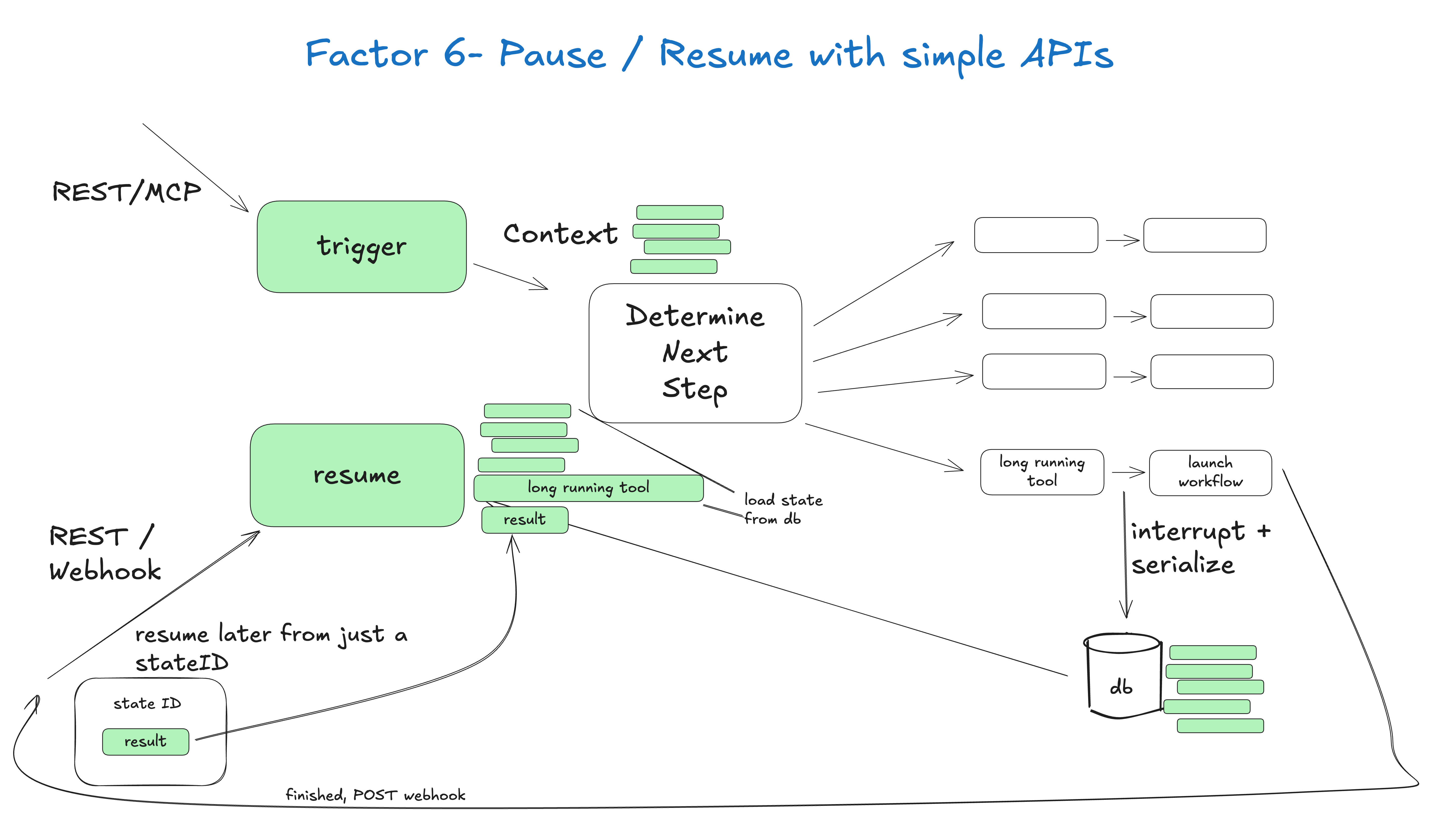 解析: 生产级工作流充满了需要“等待”的时刻:等待人类审批、等待长时间任务、等待外部回调。一个无法被中断和精确恢复的 Agent 是毫无用处的。掌控控制流意味着,当 LLM 决策为 fetch_data 时,编排器可以立即执行并继续循环;当决策为 request_human_approval 时,编排器则应保存当前状态,中断执行,等待外部事件(如一个 Webhook 调用)来恢复流程。这是实现一切高级交互的基础。