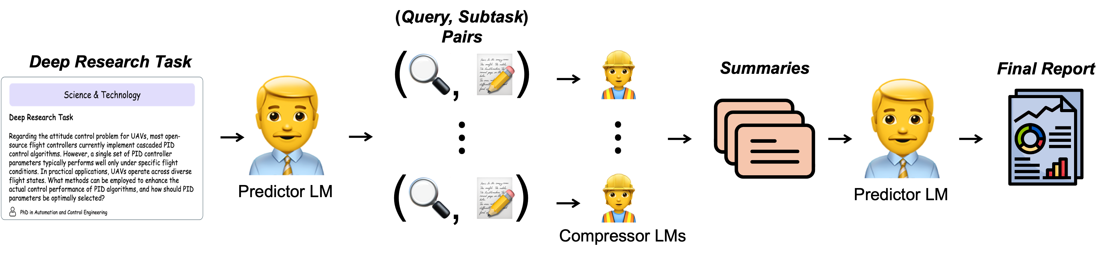 (Query, Subtask)对。 - 并行压缩:多个压缩器并行运行,分别进行搜索、阅读网页,并根据 Subtask 生成摘要。