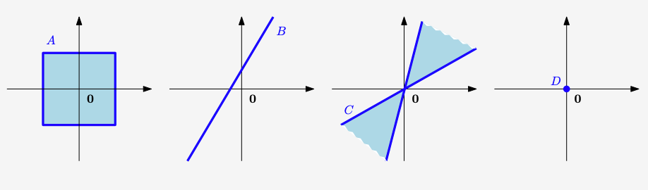 - 过原点的直线:形如 \(\{\lambda \boldsymbol{v} | \lambda \in \mathbb{R}\}\),其中 \(\boldsymbol{v} \neq \boldsymbol{0}\)。